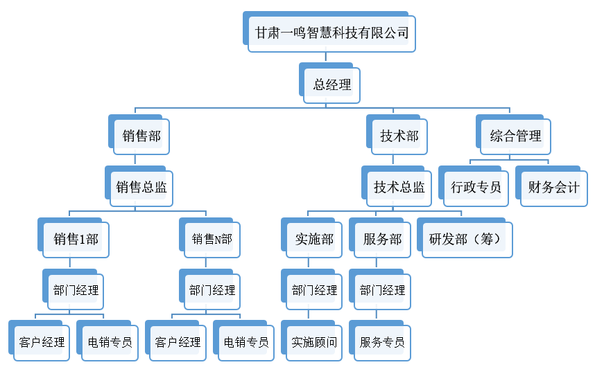 一鸣智慧核心成员从事软件和信息技术服务行业均有十年以上时间,拥有丰富的企、事业单位数字化建设经验,服务客户近千家,受到客户的广泛认可和一致好评。公司下设销售部门、 技术部门、服务部门等,有较强的数字化建设方案规划和实施能力,并持续为客户提供优质 的技术服务。